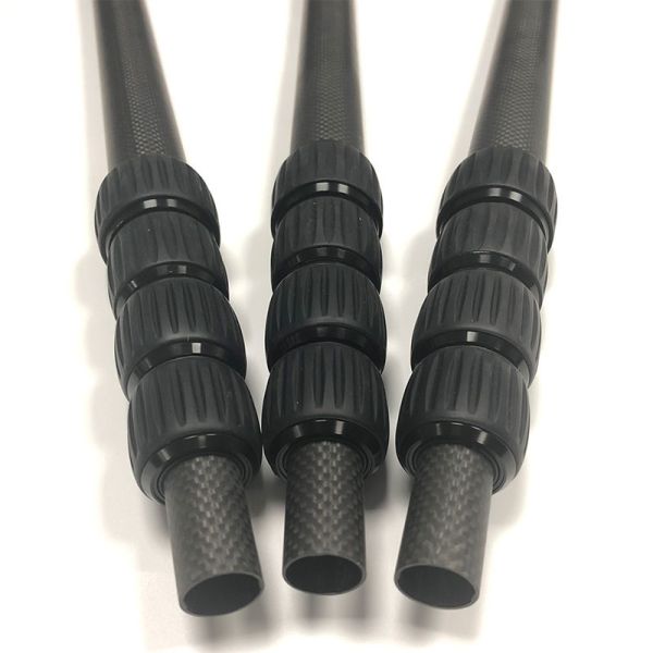 Pole composed of carbon fiber tubes with visible mesh, made entirely of high-quality carbon fiber. It is real carbon fiber, pressed and cured in the oven. The joining of the tubes is done with nylon clamps with conical tightening by rotation. Quick release and very lightweight. The diameter of this pole goes from major to minor and the sections can be stored inside each other, adapting it in each case to the desired length.
