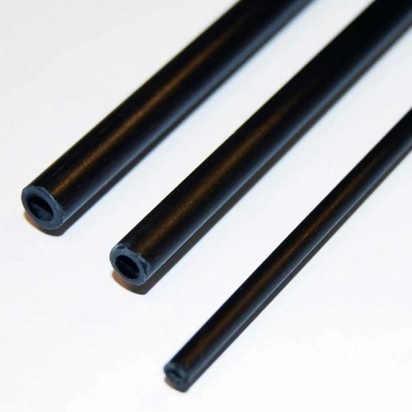Pultruded carbon fiber tube is the ultimate push rod since it contains 95% unidirectional carbon fiber running longitudinally and is covered with a light glass scrim. This design offers a high stiffness-to-weight ratio and makes this tube ideal for 1/4 scale aircraft pushrods, slope soarer, and helicopter tail booms, as well as reinforcement rods in lightweight constructions such as model cars, musical instruments, trade show presentations, etc.